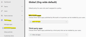 Sign in to the Teams admin center, access Teams apps, and select Setup policies.
