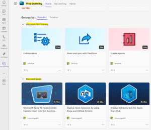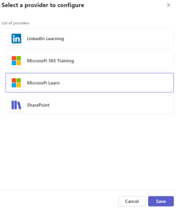 Content from Microsoft Learn, Microsoft 365 Training, is available for free and enabled by default but let me show you how to enable the providers.