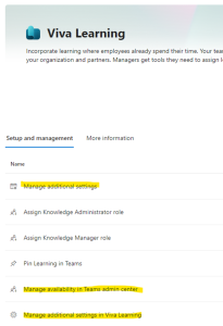Viva Learning is included in Microsoft Teams. To set it up, you’ll need to have Microsoft Teams available for use by your organization, and permissions for each of the steps to set up and manage Viva Learning.