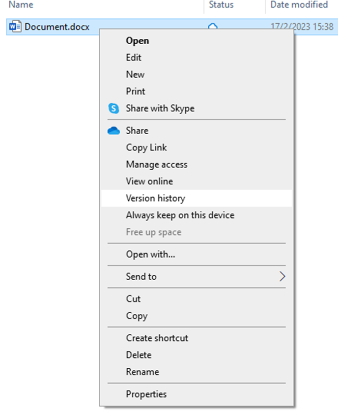 After syncing our document library using OneDrive Sync, we may access Version History directly from Windows Explorer. If we access the data from our computer, this is a preferred alternative.
