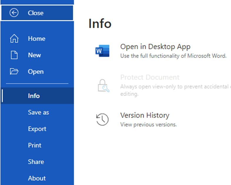 We may have access to the file version history directly from the Office program (Word, Excel, PowerPoint). If the browser experience is used to launch the application, which is the default setting, then select File, info from the menu.
