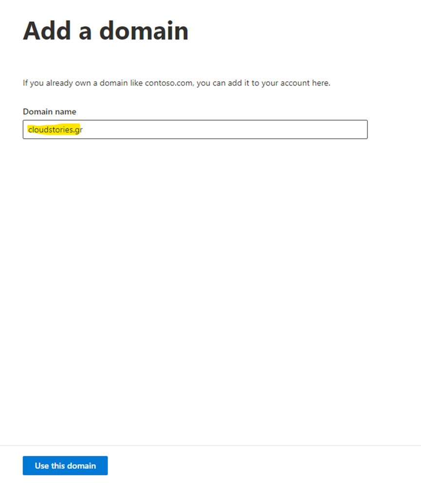 Enter the new domain name that you want to add, and then select use this domain